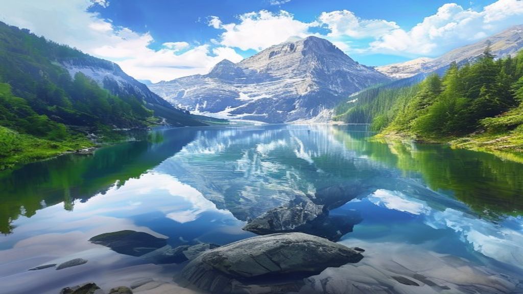 mountain lake perfect mirror alpine reflection calm high dynamic range