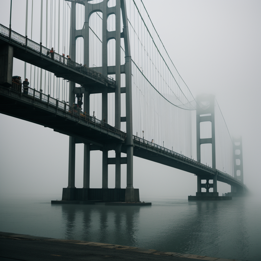 Discover the captivating serenity of a bridge enveloped in a foggy morning, where mist dances over the waters and the world feels quiet and mysterious. This scene is a perfect blend of nature's beauty and architectural wonder, inviting you to pause, reflect, and be inspired by the peacefulness it exudes. Whether you're an adventurer or a daydreamer, this stunning imagery will transport you to a tranquil oasis, sparking curiosity and reflection.