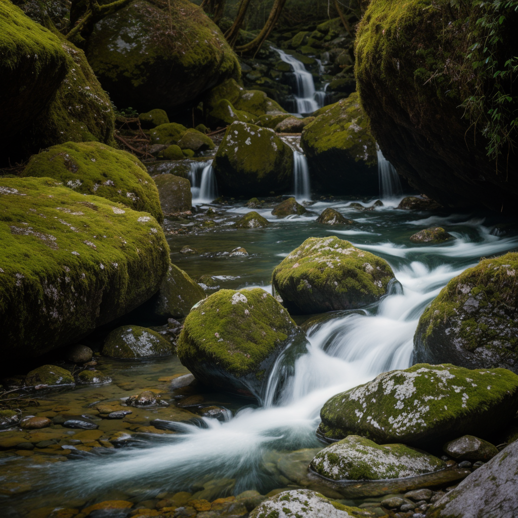 Discover the Beauty of Mossy Rocks by Clear Waterfalls
