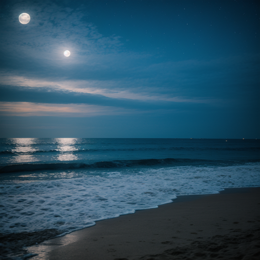 Imagine a serene beach at night, where the moonlight dances on the waves, creating a magical, tranquil atmosphere. This enchanting scene invites you to unwind and connect with nature. Discover the mesmerizing beauty and peaceful ambiance of a moonlit beach, perfect for those seeking relaxation and inspiration. Let the soothing sounds of the ocean and the gentle glow of the moon transport you to a world of tranquility and wonder.