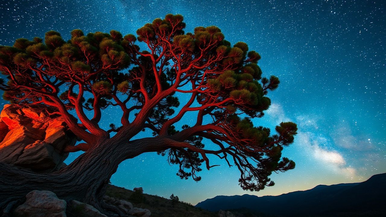 milky way core ancient bristlecone pine tree night