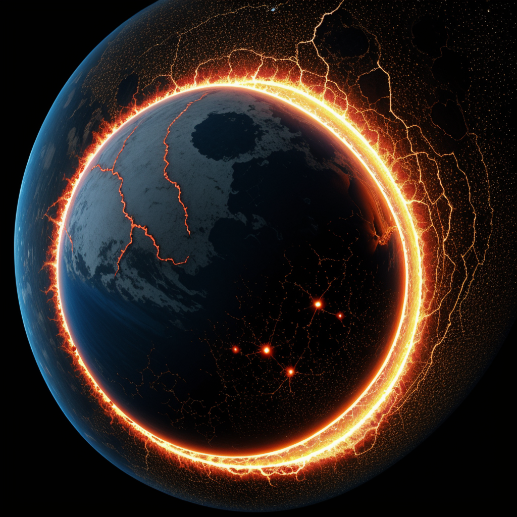 Astrogeology, astronomical marvels, astronomical phenomena, Astronomical Research, astronomy, astrophysics, celestial bodies, cosmic discoveries, cosmic landscapes, cosmic phenomena, cosmic wonders, earthlike planets, Exoplanets, extraterrestrial geology, galactic exploration, geological formations, geological processes, geological wonders, glowing cracks, interplanetary features, lava flow patterns, lava formations, lava veins, planetary exploration, planetary features, planetary geology, planetary imagery, planetary landscapes, planetary photography, planetary science, planetary studies, planetary surfaces, science of planets, solar system, space exploration, space science, space travel, space wonders, stellar bodies, universe exploration, volcanic activity