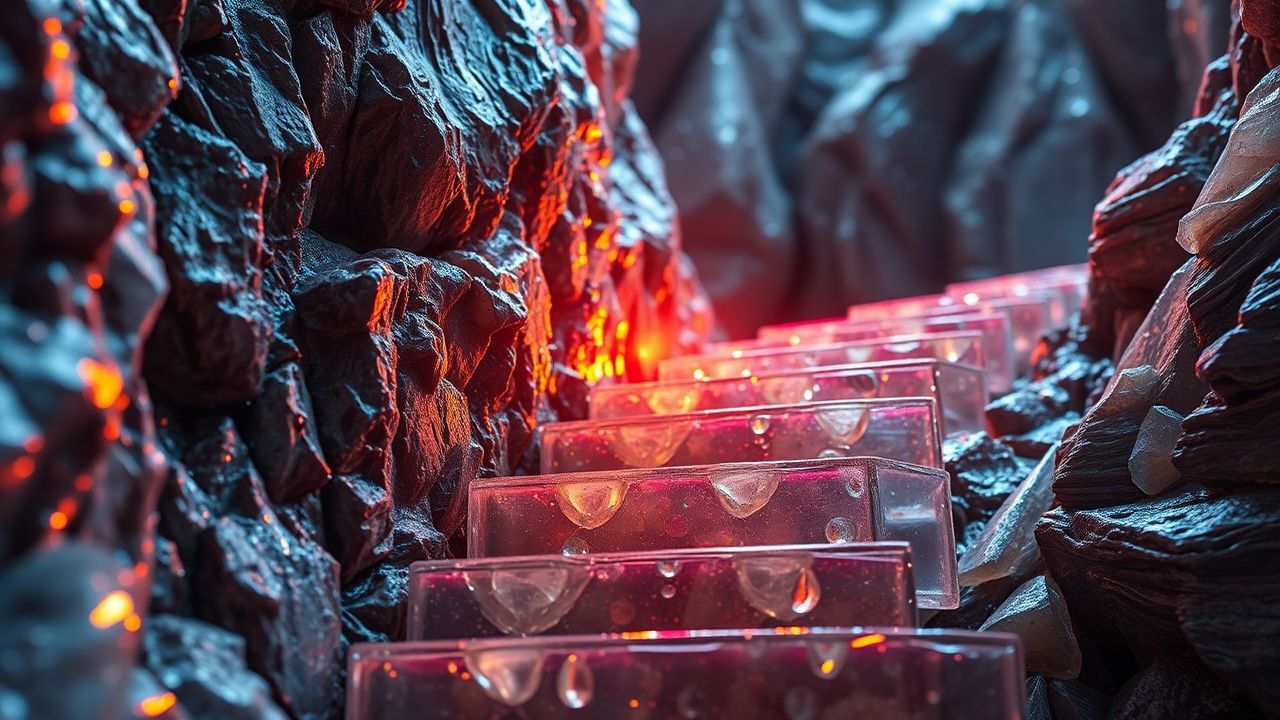 bismuth crystal staircase rainbow metallic formation macro
