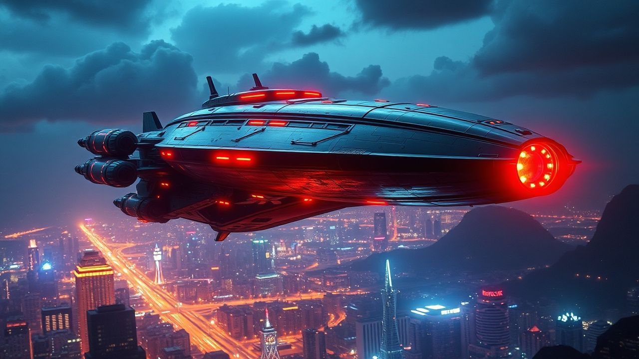 alien first contact ship hovering over city lights