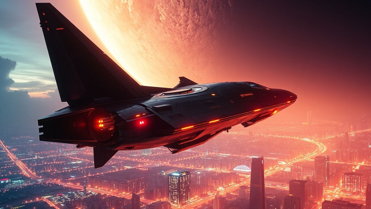 alien first contact ship hovering over city lights