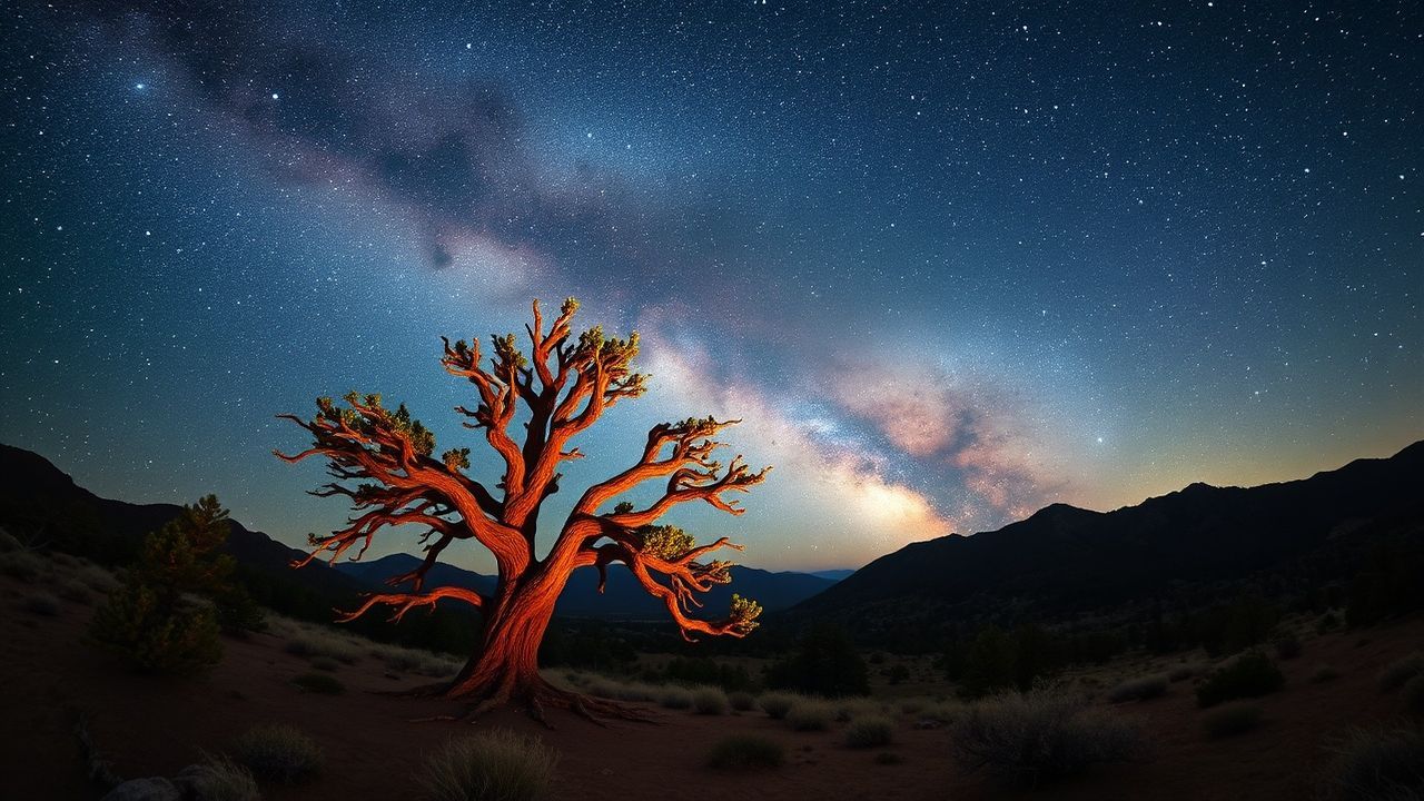 milky way core ancient bristlecone pine tree night