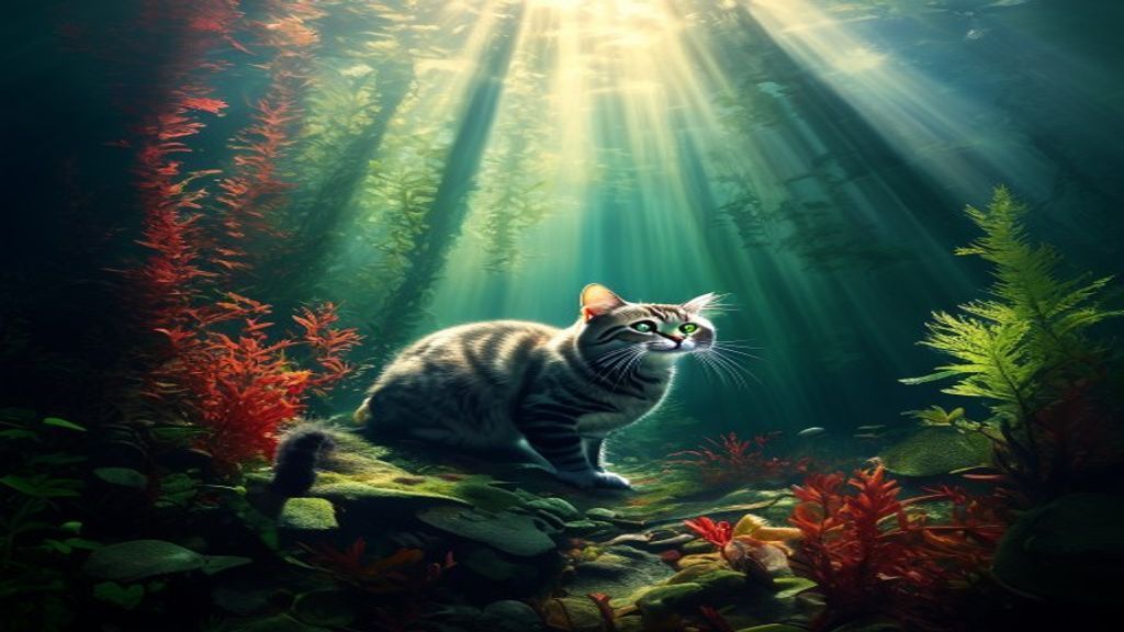 kelp forest cathedral sun rays streaming underwater high dynamic range