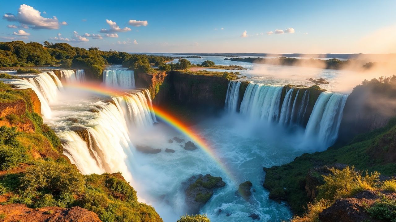 iguazu falls panoramic hundreds cascades rainbow mist